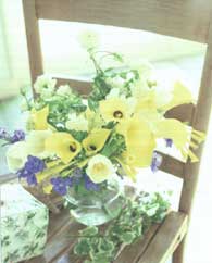 Mille Fleur Flower Design 通信 vol10. Aprミルフルール・フラワーデザイン (ブーケ、花の教室) 4月号 先日テレビを見ていたら、アトピーがみるみる治っていくという 画期的な研究開発商品ライスパワーエキスを抽出した化粧品を発表、 ということで、早速新宿のデパートに週末求めにいったのですが、 行列を作って待ったにも関わらず、もう売りきれということで、 予約もせず、仕方なく帰ってきました。 これだけ、アトピーや、アレルギーで悩んでいる人たちが多いのだなぁと 実感しました。 (ご興味のある方は、お問い合わせいただければ、メーカー名等お知らせします。 私は全くこの会社とは、無関係ですが…念の為。) 最近の女性向け化粧品の成分を見ると、マロニエエキス、カミツレエキス、 ノバラエキス、おまけにもも果汁、檸檬果汁、りんご果汁、オレンジ果汁、など果物、ハーブ、草花のこれでもかと、 列挙されて売られているのも驚きです。 人工的な化学の名前より、何となくイメージ的に健康的な感じがします。 植物の力は人間の体に有効な成分がたくさん含まれているのはもうあたりまえのようですが、以前レッスンに いらしていただいている方がおもしろい事をお話してくれたのを思い出しました。 その方は某大手化粧品メーカーにお勤めされていたのですが、その方の発見、画期的なお花の 水揚げ方法とは…。 手持ちのエッセンスを花瓶に何滴か垂らしてみたところ、飾られていたお花が どんどん元気になっていったとのことで、もったいないんだけど、少しずつ使っているとの事でした。 水揚げにはいろいろな方法がありますし、お花によっても変えて対応しなければなりません。そんな中で、 本には書かれていない 自分ならではの水揚げ方法を見つけるのも、秘伝のようで楽しいです。 お花を生ける際にはどのように奥行き感を出すかというのは大変重要なポイントとなります。 3次元の世界で、縦、横の広がりは作品の大きさに直接関わり、奥行きの深さは味わい深い作品か否かという評価に 影響します。限られたスペースの中で実物以上に奥行き感や広がりを感じさせる作品は賞賛されます。 人間に対しても奥の深いというのは誉め言葉になりますよね。 作品を鑑賞する人は興味のある作品には、正面からはもちろんのこと、右から左から角度を変えて眺め、 ひいては上から覗いたり、下からや、寄って、離れて楽しみます。 人間の目は立体的なものを頭の中で自然に再構成して、その作品の”かたち”を認識するので後ろに 生けられている花もきちんと目に映ります。 さて、このような経験はありませんでしょうか? かなり納得のいく作品が仕上がったので、記録に残す為に、 写真をとったものの、なんか貧弱な印象にしか写ってなくて、がっかり・・とか、たくさんお花を使った割には、 写っているお花が数輪しかないというような。 ご安心ください。これは写真の撮りかたが悪かったのではなくて、そんな写りになるのは仕方のないことなのです。 人間の目が複数の場所から見て、対象物の形を補正していくのと違って、カメラの眼は厭くまで機械(メカ)の眼であり、 必ず一点からしか物を捕らえてくれません。ですから、ポートレートとして残す作品はどこから見ても美しい作品というよりも 観る点は一点でそこにたいして、見せ場の花が生けられ、印象的なものが写真花としてはよりよく仕上がります。 |