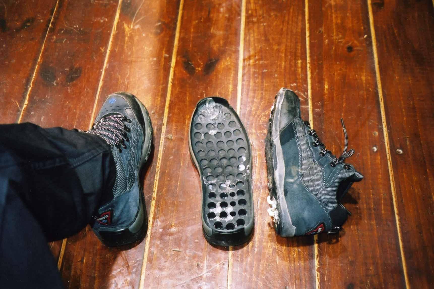 2年前、ネパールでヒマラヤ山脈トレッキングをした際、その時履いていたコンバースをトレッキングガイドにダメ出しされ、半ば強制的に買わされたトレッキングシューズがあった。確かにそのシューズのお陰でトレッキングそのものは快適だったものの、シューズ自体は全然気に入ってなくて、日本に帰ったら二度と履くことはあるまいと思っていた。しかし、その後そのシューズはいつの間にか重宝される存在になり、旅行には欠かせないアイテムへと立身出世を遂げていたのだが、今回トラブルに見舞われることとなった。