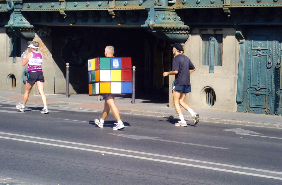 ※市民マラソンの模様。こんなコスプレの人も(ちなみに、ルービックキューブはハンガリー人が発明)。