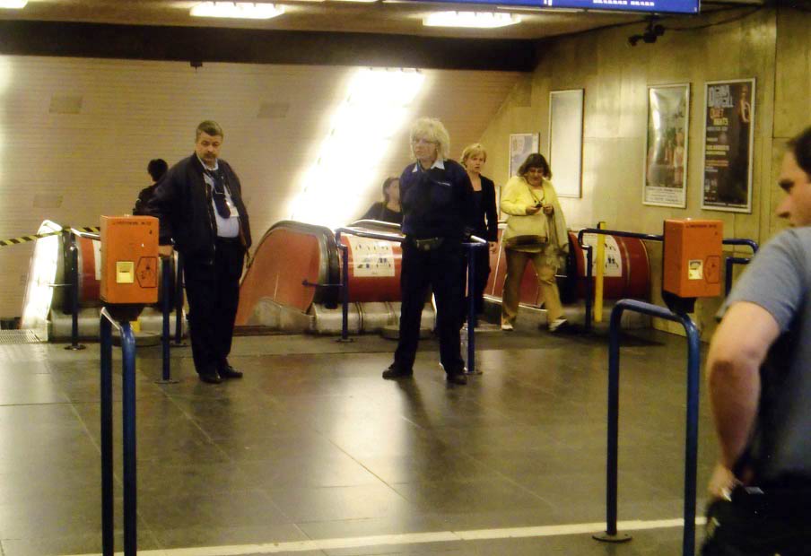 ※悪名高き地下鉄。オレンジの機械に切符を入れて検札するが、これに気付かず白線を越えると