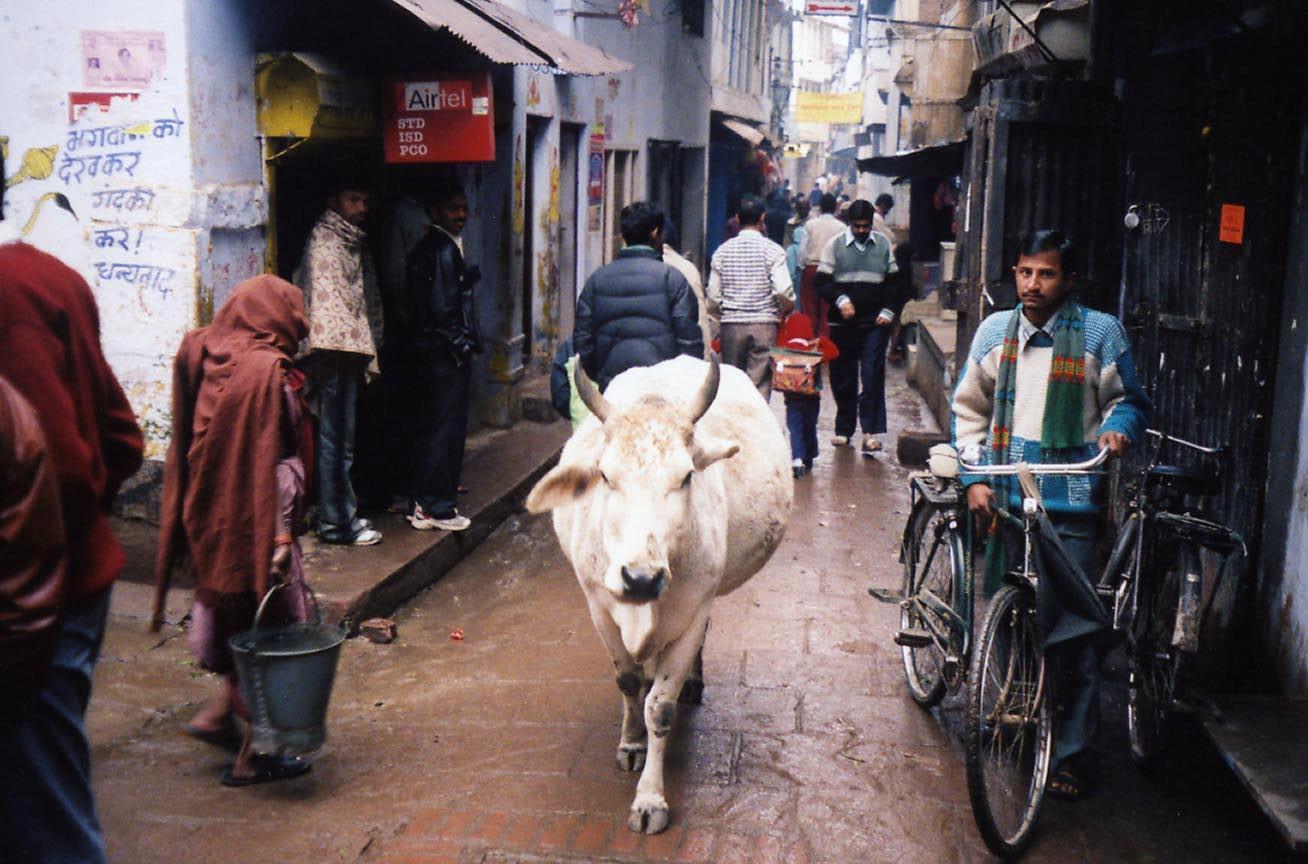 これもバラナシの旧市街。インドでは年間3万人が狂犬病で死亡しており、その数は世界全体の
