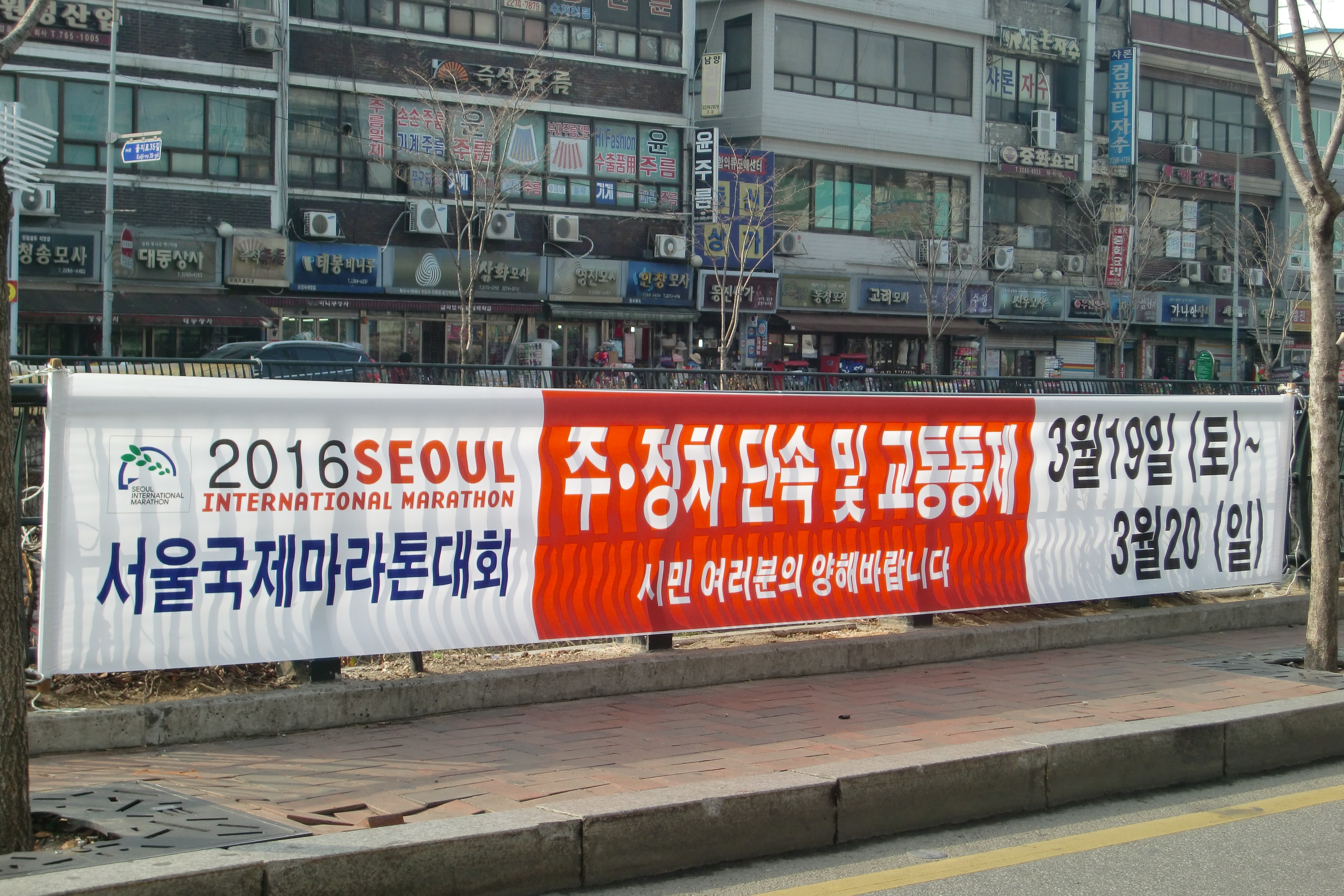 ※街にはソウル国際マラソン開催を知らせる横断幕が