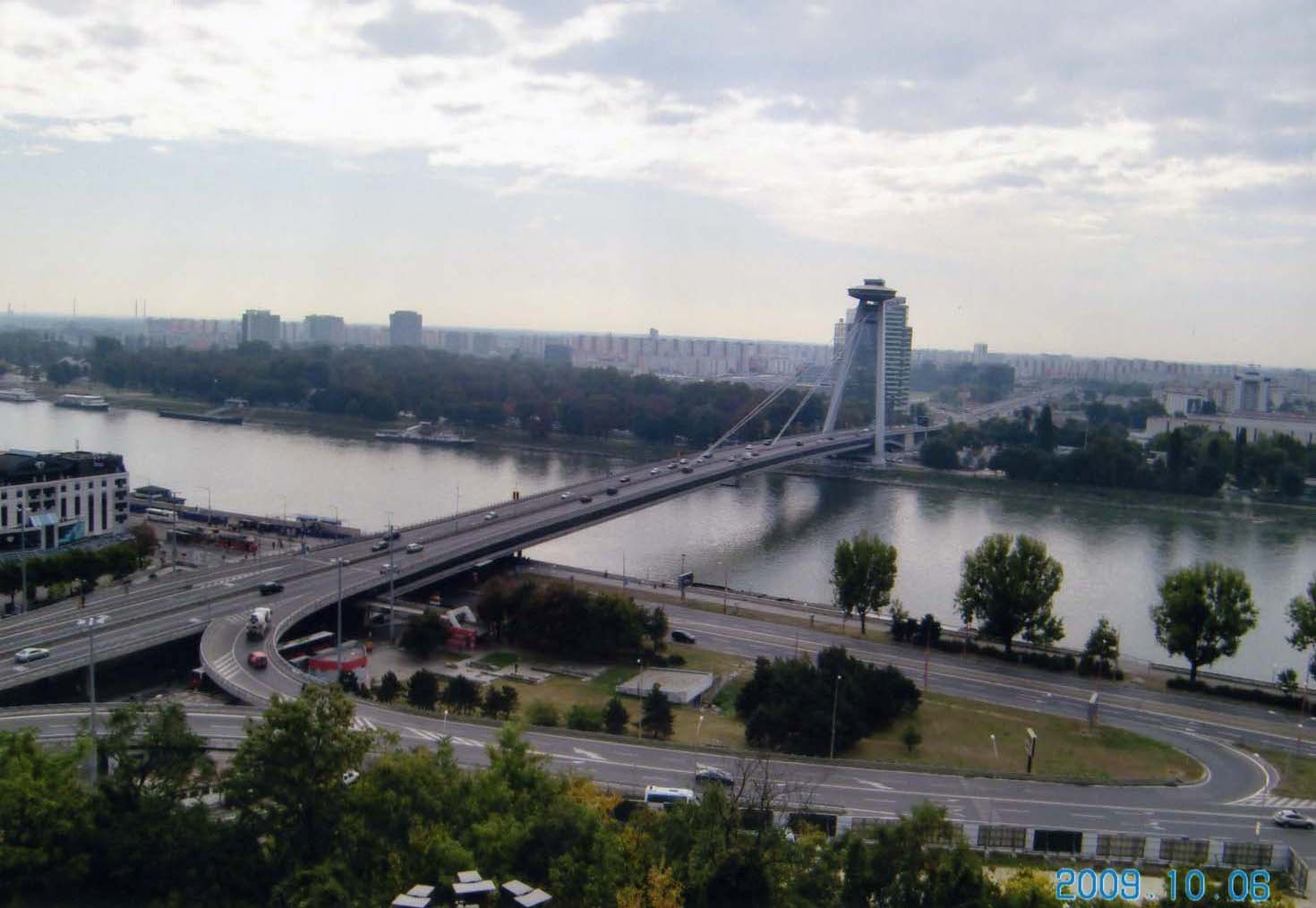 列車が遅延し、上記の予定より30分程遅れてスロバキアの首都ブラチスラバに到着。正直、この街には取り立てて興味があったわけではなく、そのままスルーしても一向に構わなかったのだが、一応スロバキアにも滞在しておくかということで立ち寄ってみた。トラムで市内に移動し、ホテルにチェックイン。市内で有数の高層ホテル(といっても15階建て)なのだが、エレベーターが超老朽化で、指定階に到着してチーンと鳴るも、一向に扉が開かない。故障か?とヤキモキしていると15秒程して扉が開くのだが、その時点でまだフロアと15cmくらい段差があり、やがてそれがゆっくりと解消されていくというシロモノであった。大丈夫かいな。